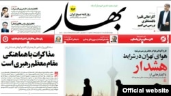 روزنامه‌ «بهار» ششم آبان‌ماه به دنبال انتشار مقاله ای با عنوان «امام؛ پيشوای سياسی و يا الگوی ايمانی؟» توسط هیأت نظارت بر مطبوعات توقيف شد.