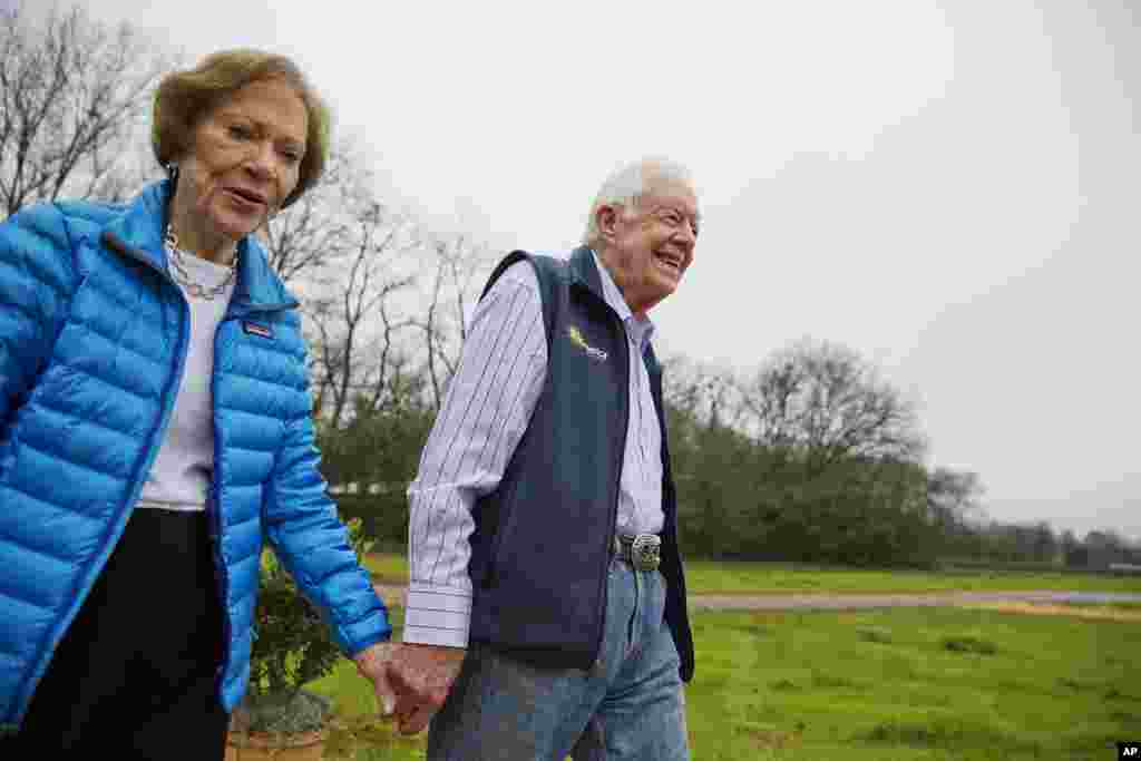 جیمی کارتر همراه با همسرش رزالین در مراسم جشن هفتادوپنجمین سالگرد ازدواجشان