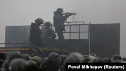 خبرنگاران رادیو اروپای آزاد/ رادیو آزادی در آلماتی می‌گویند روز پنجشنبه ۱۶ دی نیروهای امنیتی که برخی از آن‌ها سوار بر نفربرهای زرهی بودند در میدان جمهوری به سوی معترضان شلیک کردند.