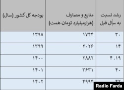 علاوه بر این، بررسی جدولهای بودجه پنج سال منتهی به ۱۴۰۲ نشان میدهد که بودجه بخشهای نظامی و امنیتی رو به افزایش است؛ موضوعی که شاید بیارتباط با حوادث بعد از آبان ۹۸ و شهریور ۱۴۰۱ نباشد.